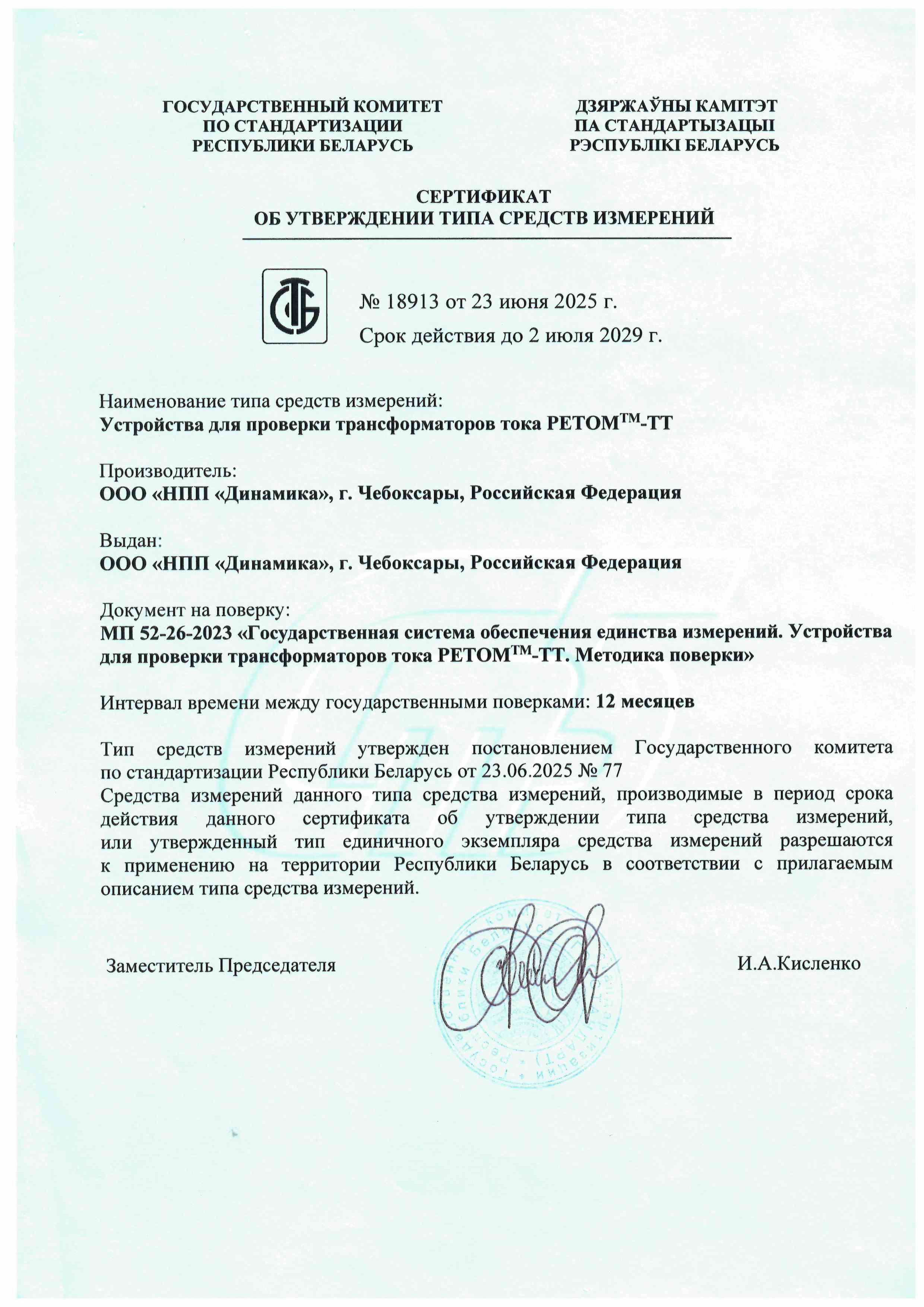 Испытательный комплекс РЕТОМ-ТТ внесен в реестры средств измерений России, Республики Казахстан и Республики Беларусь.